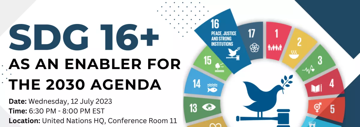 Halfway to the 2030 Agenda and with an eye to the SDG Summit, this side-event brings together stakeholders from across the SDG16+ community to take stock of progress towards SDG16+ and share in lessons learned and strategic approaches for strengthened implementation going forward.  As such, it will also look to key opportunities for mobilization leading into the SDG Summit in September 2023 and beyond, ddrawing upon recent and upcoming research by the SDG16+ community (including the TAP Network, the Pathfinders, UNDP, and International IDEA).
