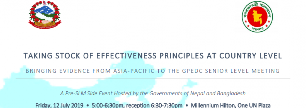 As the GPEDC Senior Level Meeting seeks to further commitments on the global effectiveness agenda, it is critical that deliberations are anchored by country-level realities. This pre-SLM side event, co-hosted by the Government of Nepal and the Government of Bangladesh, will provide a forum for consultation with countries in the Asia-Pacific region with respect to the effectiveness agenda.