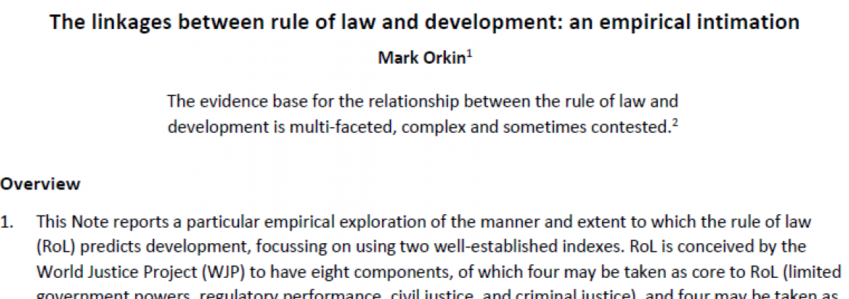 This Note explores the manner and entext to which the rule of law (RoL) can predict development, by focussing on the eight components of the RoL according to the World Justice Project (WJP) and the three components of the Human Development Index from UNDP.