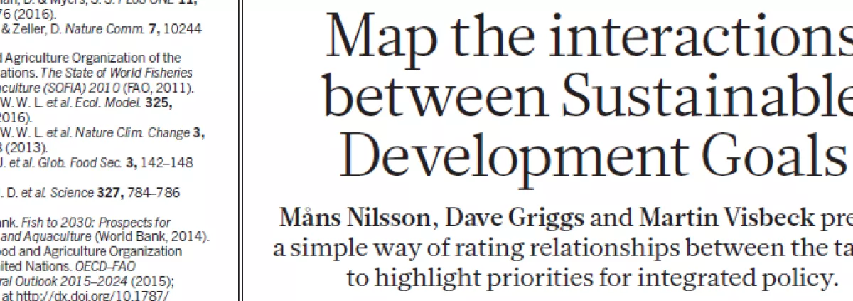 In this short article from Nature, Måns Nilsson, Dave Griggs and Martin Visbeck present a simple way of mapping the interactions between the SDGs and rating relationships between the targets to highlight priorities for integrated policy.